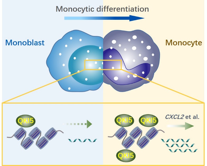 该研究描绘了造血细胞中RNA结合蛋白的细胞核内分布图谱,系统性筛选出染色质富集型RBP,为后续核内RBP研究提供了开放性高通量数据资源;并首次鉴定出QKI5直接结合染色质促进转录的新机制,丰富了研究者对血液系统RNA结合蛋白功能机制的认识。