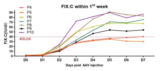 图2:基因治疗后一周内FIX:C水平变化