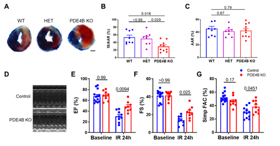 图1. PDE4B敲除保护小鼠心肌缺血再灌注损伤