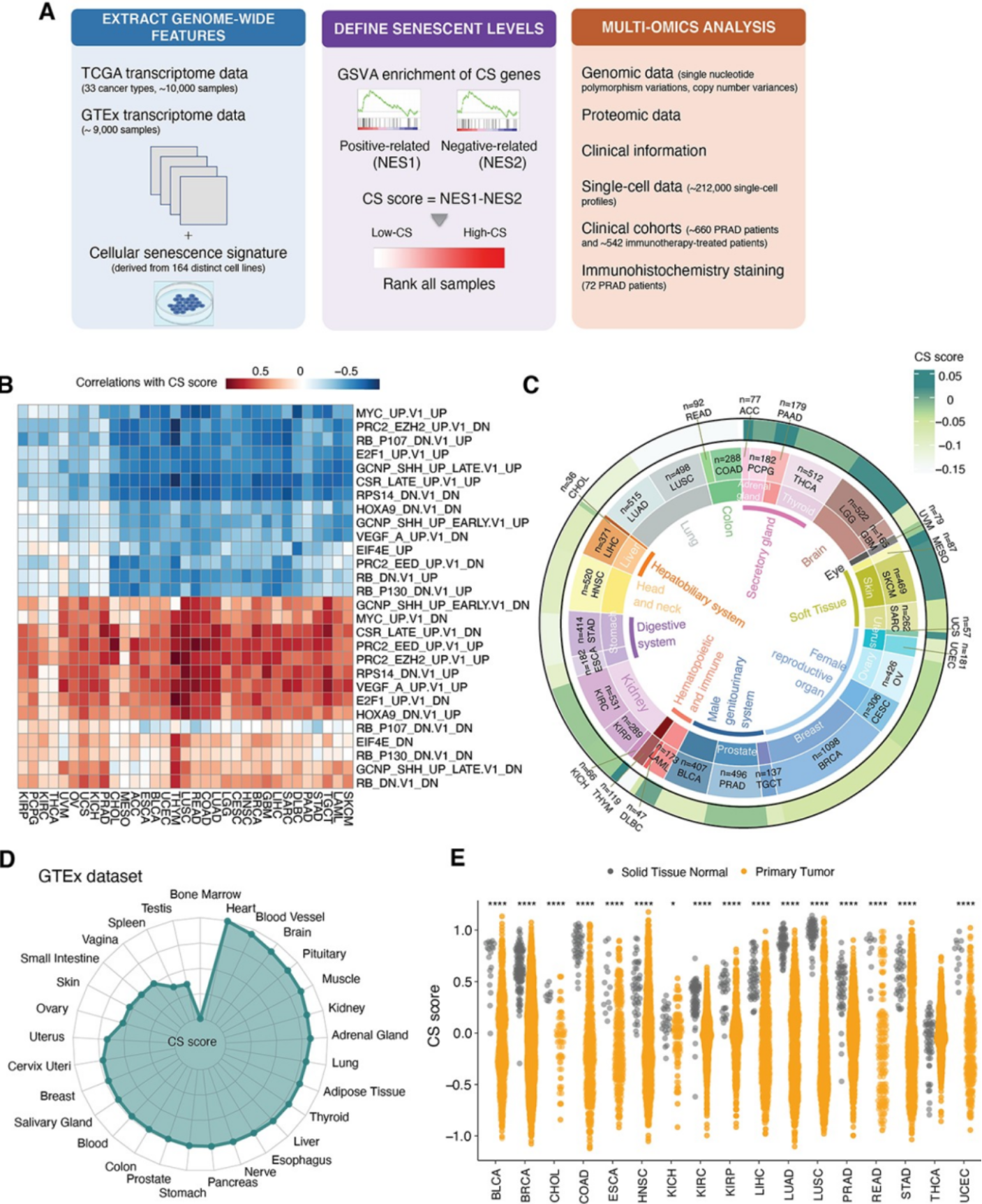 该研究为深入地理解细胞衰老在不同癌症类型中所发挥的环境依赖性的调节作用构建了一个全面的框架,也为细胞衰老在心血管疾病等重大疾病中的作用研究提供了范本。