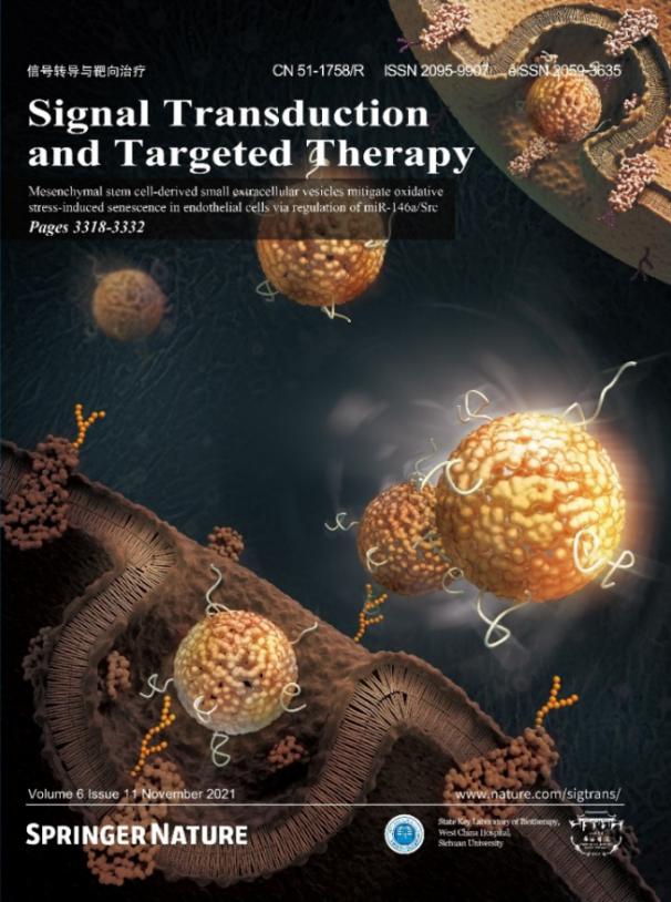 2021年10月22日,388vip太阳集团基础医学研究所(简称“基础所”)赵春华团队在signal transduction and targeted therapy杂志以封面标题论著刊登题为“Mesenchymal stem cell-derived small extracellular vesicles mitigate oxidative stress-induced senescence in endothelial cells via regulation of miR-146a/Src”的研究论文,该研究报道了间充质干细胞衍生的小细胞外囊泡(MSC-sEV)在减轻内皮细胞衰老中的作用和机制。
