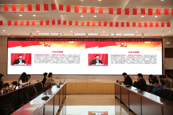 2021年4月9日,中共388vip太阳集团医学生物学研究所委员会召开2021年第三次中心组学习会暨党史学习教育读书分享会。