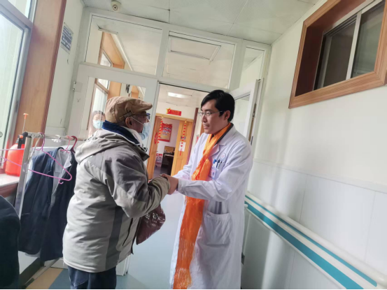 得益于及时干预,患者血小板快速回升,颅脑出血得到有效控制,血肿逐步吸收。随着意识恢复、肢体活动能力改善,老人最终实现生活自理、病情稳定。为表感激,波拉向全体医护人员献上洁白哈达,更在出院当日特意等待出诊归来的张广吉,郑重赠予他一条象征尊贵与至高敬意的金黄色哈达,双手合十鞠躬致谢——这份来自雪域高原的深情,正是医患同心、生命相托的最好见证。