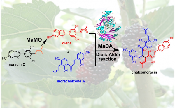 图1. MaDA高效立体选择性催化[4+2]环加成反应生成DA加合物Chalcomarocin