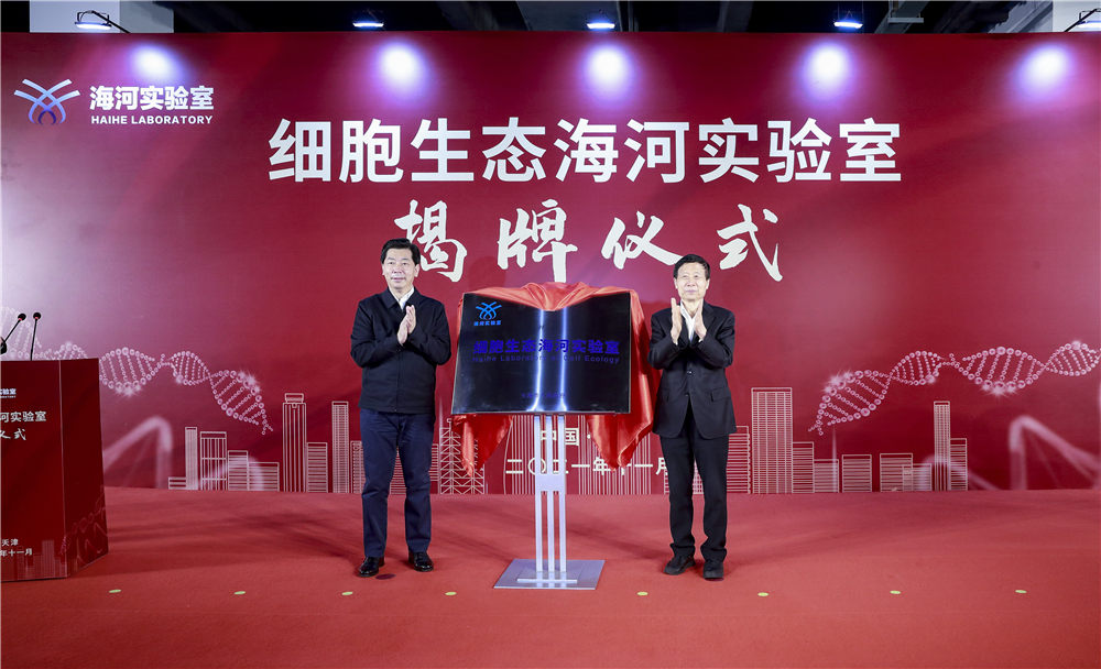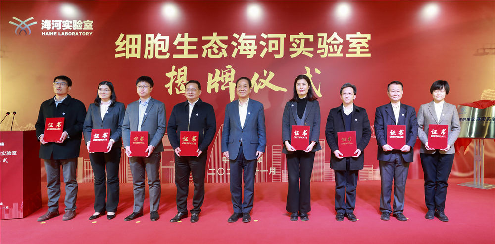 市委副书记、市长廖国勋与刘德培院士共同为细胞生态海河实验室揭牌