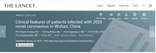 1月24日,《柳叶刀》在线发表了两篇原创研究论文、两篇评论及一篇社论。