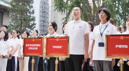 2023年,北京理工大学“协和医班”新生代表参加北京协和医学院开学典礼,图为“协和医班”新生代表在开学典礼现场。北京协和医学院供图