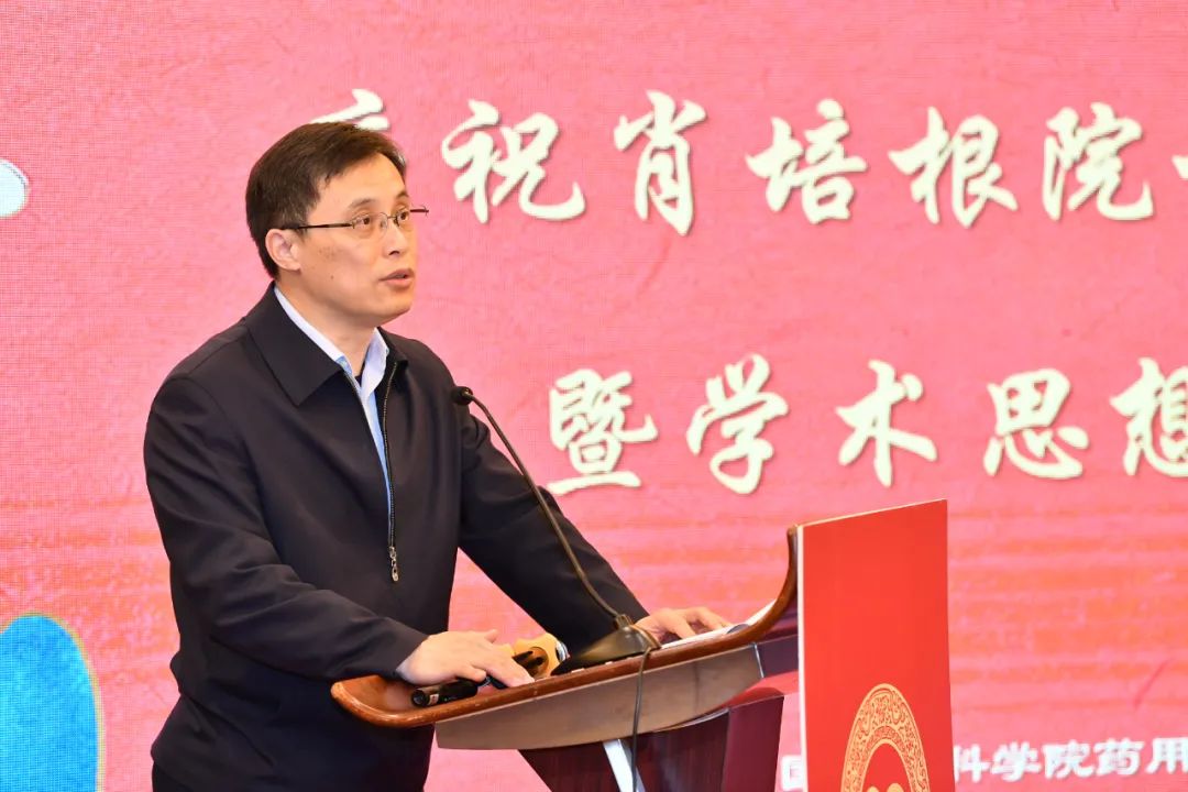 黄璐琦院士、王国辰秘书长、药用植物研究所党委书记范晓明先后致辞,表达对肖培根院士的崇高敬意和热烈祝贺。药用植物研究所所长孙晓波以《汇通古今,踏遍青山建伟业;学贯中西,纵横五洲创未来》为题,系统回顾了肖培根院士创立药用植物亲缘学、开创药用植物三级开发战略理论等方面的学术思想和开创性成就,并号召药植所师生职工弘扬和传承老一辈科学家热爱党,热爱祖国的崇高理想和信念,学习他们的精勤不倦,勇于创新的治学精神,不忘初心再图强、实事求是促发展,在建设药用植物科技创新体系核心基地征程中创造新的辉煌。