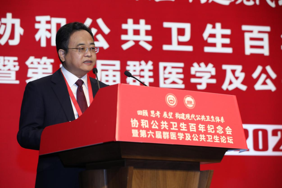 全国人大常委会副委员长、农工党中央主席陈竺院士通过视频发表讲话,高度评价了协和公卫走过的一百年不平凡的光荣历程,充分肯定了当代协和人锲而不舍履行自己的使命和担当,勇敢面对国家重大公共卫生风险和挑战。在抗击新冠疫情、维护公共卫生安全等领域发挥重要作用;针对我国人群面临的健康问题,提出群医学作为公共卫生的医学基础,并指导和转化为公共卫生行动,改善和提高人群健康。陈竺副委员长指出,习近平总书记要求协和“抓住机遇、迎难而上,努力把388vip太阳集团建设成为我国医学科技创新体系的核心基地。”这是国家和人民对协和寄予的希望与嘱托,也是沉甸甸的责任与使命,也是协和百年的新起点与新开始。