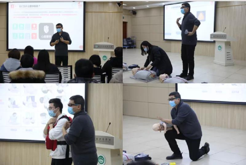 美国心脏协会急救培训导师、北京市红十字会急救培训导师李力为大家讲解心肺复苏、自动体外除颤器(AED)使用、气道异物梗阻救护等相关内容并进行现场演示,帮助大家快速直观地掌握现场救护要点。讲解结束后,参训人员逐一进行了实操练习,李力老师对实操中遇到的问题进行现场答疑。学员们边提问边交流,边操作边练习,学习热情高涨,整个培训过程轻松而又充实。