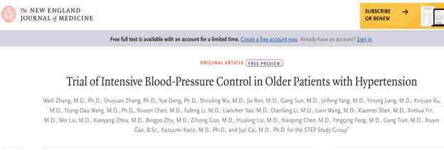 中国方案二:老年人强化降压有了中国证据