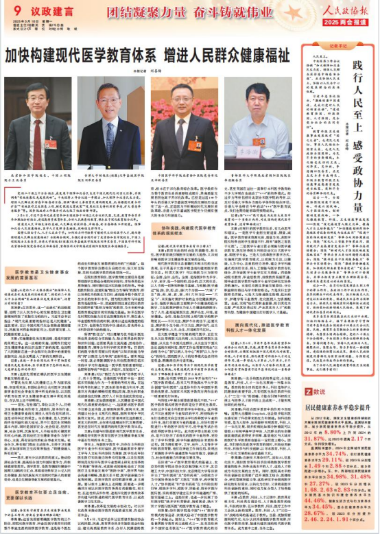 国势之强由于人,人才之成出于学。如何助力科学培养可堪时代大任的医学人才,进而持续增进人民群众健康福祉?全国两会期间,本报记者分别约访了北京协和医学院校长、中国工程院院士王辰委员,香港大学副校长(健康)及李嘉诚医学院院长刘泽星委员,388vip太阳集团北京协和医院党委书记吴沛新委员,首都医科大学附属北京朝阳医院院长李海潮委员。
